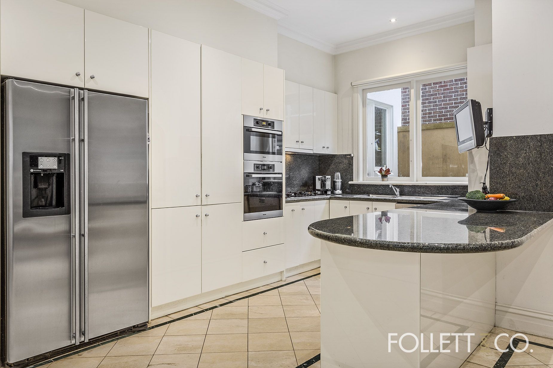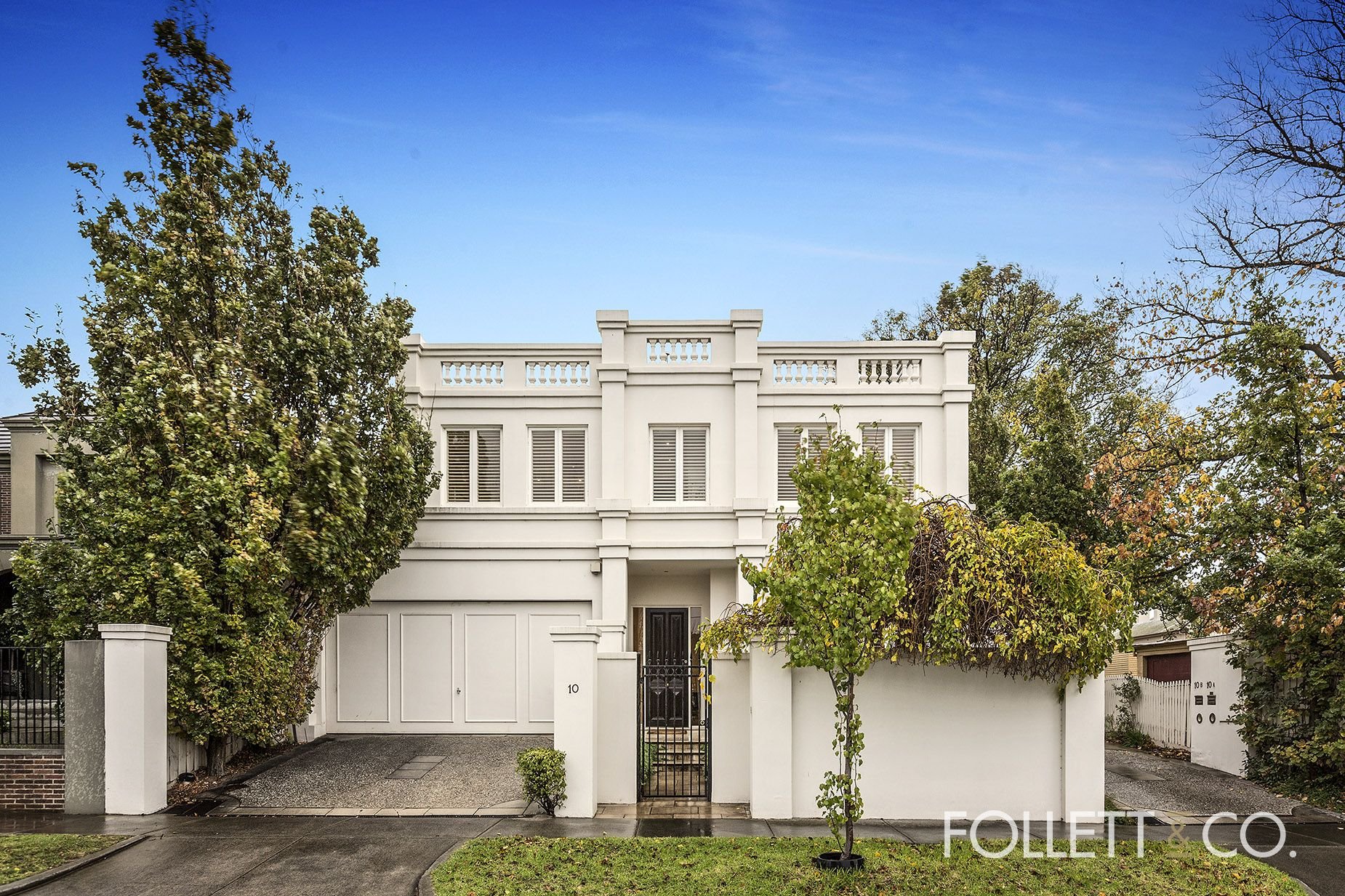 Luxurious and light-filled town residence overlooking beautiful Billilla Public Gardens in the heart of Brighton. The home features 4 big bedrooms, main with a marble ensuite and dressing room, study, formal living/dining with open fireplace, casual family media area, gourmet Miele and granite kitchen. Quality finishes throughout, plantation shutters, ducted heating and cooling, garden, courtyards and double garage. Prized location within walking distance to Church St’s shops and cafes, Brighton Schools, Middle Brighton station and beach.