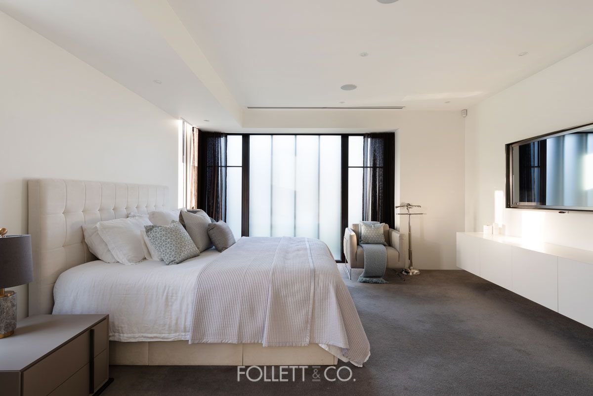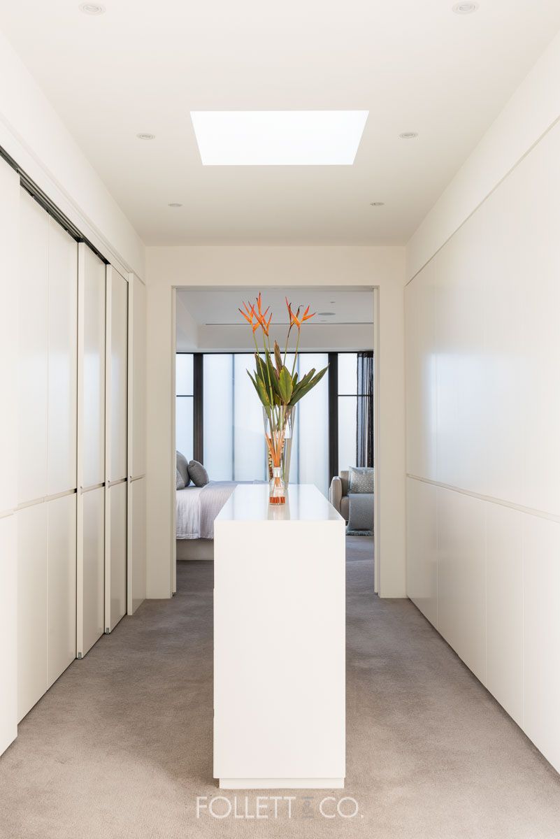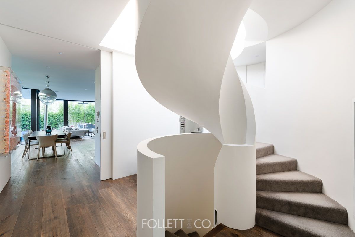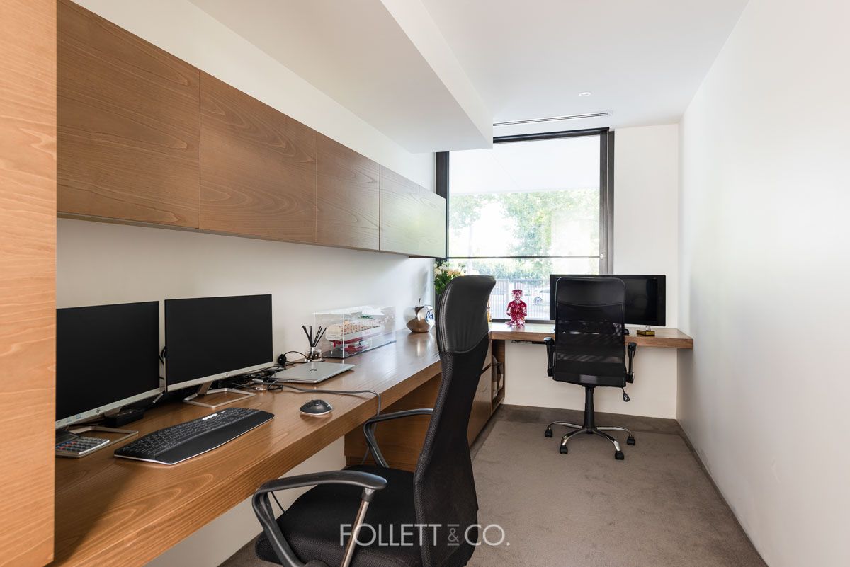 The state of the art stone kitchen features premium stainless steel Miele appliances, integrated Liebherr refrigerators & freezers, integrated Vintec wine fridge, zip tap, and a walk-in pantry. The large private study with built-in desk neighbours the ground floor bedroom, which can easily be converted into a 2nd private living space and has easy access to the gorgeous nearby bathroom.