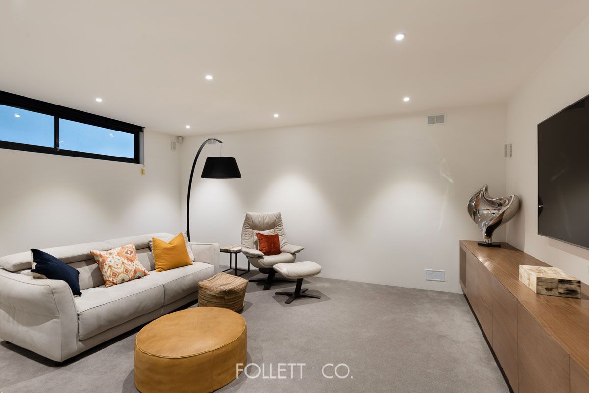 A basement cinema room is perfect for weekly movie nights, while the north-facing Bluestone back entertaining area comes complete with a gas heated pool and spa, as well as a landscaped garden and courtyard with built-in Electrolux BBQ and additional storage space.