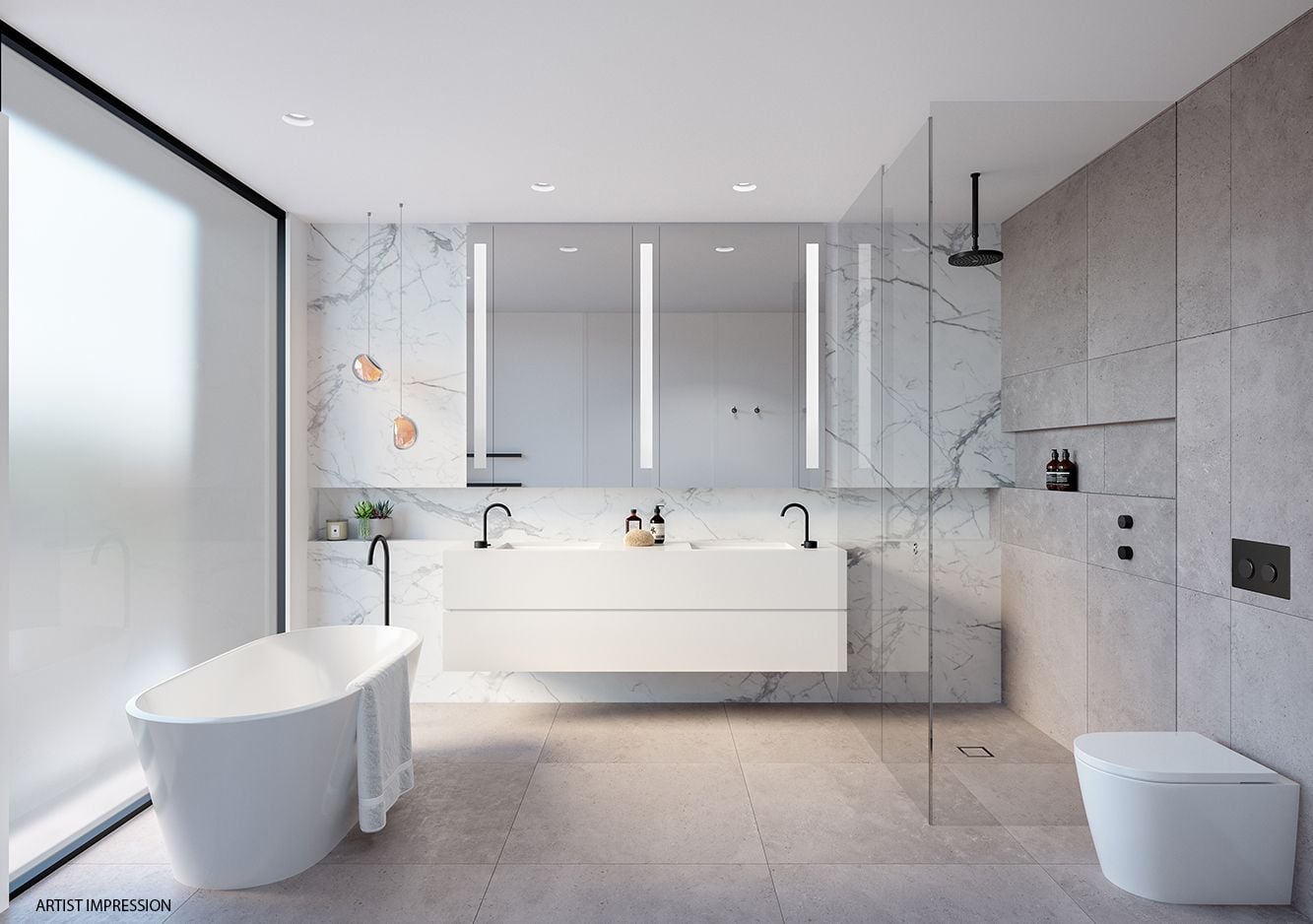 The study makes a perfect home office, with this room large enough to be transformed into a guest bedroom. Step up the amazing circular staircase and take advantage of the enormous master bedroom which offers a walk-in robe plus a stunning ensuite with Italian-designed basins, heated towel rack, freestanding bath, and a rain shower.