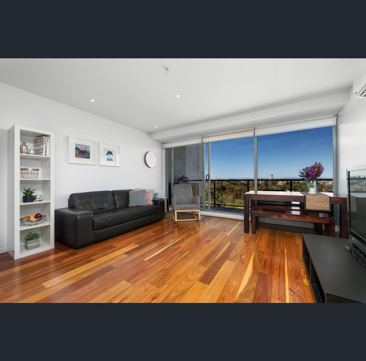 Immerse yourself in a world of tranquillity and serenity, captured from the most spectacular views of The Shrine and surrounding Botanical Gardens – a brilliant backdrop to spacious open plan living and alfresco enjoyment in this two-bedroom, two-bathroom luxury apartment. A peaceful and stylish sanctuary to balance the exhilaration and convenience of inner-city living, where transport, shopping, eateries and recreation are right at the doorstep.