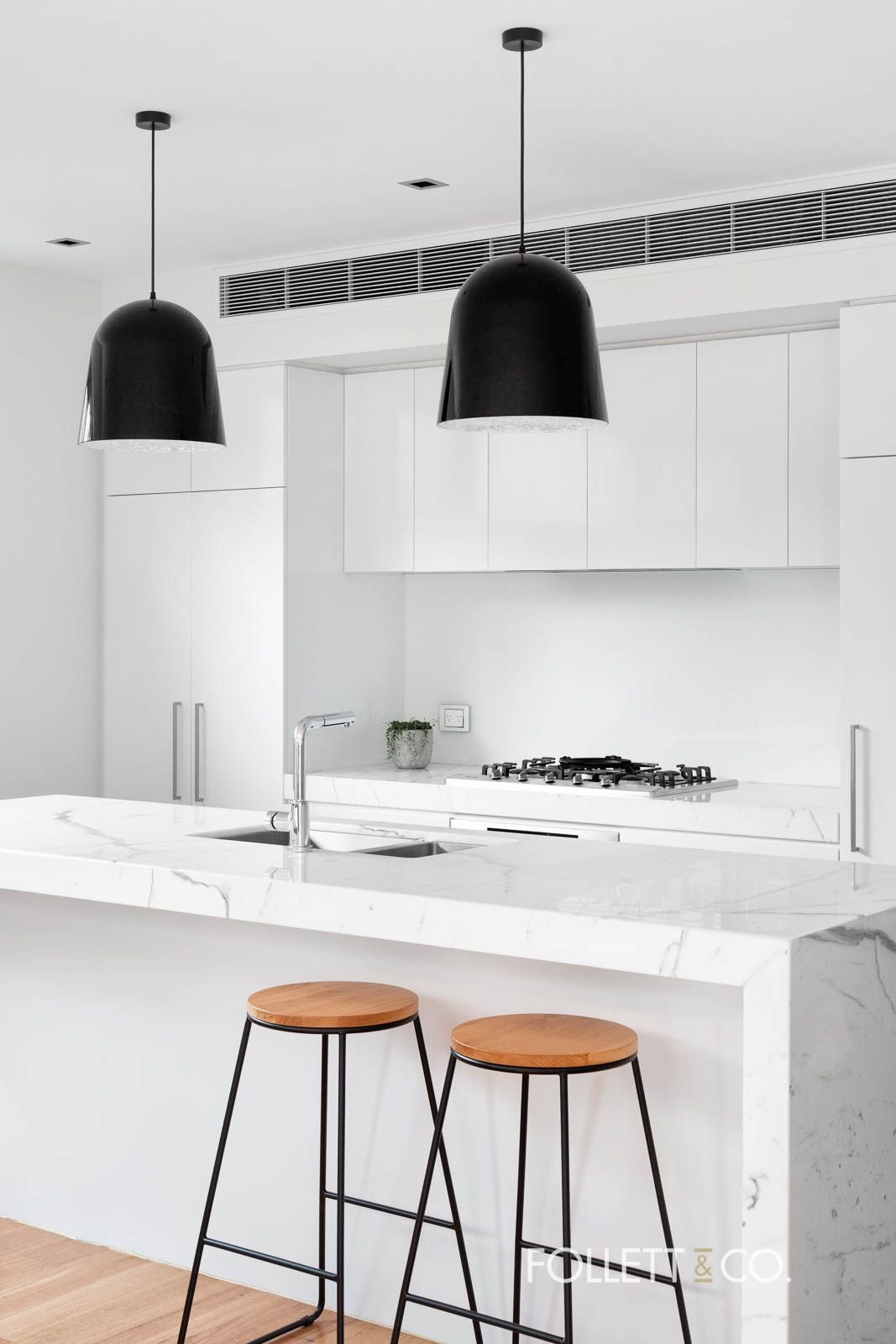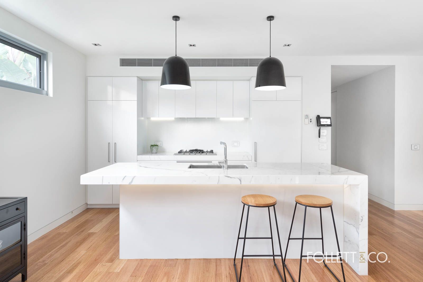 Visually stunning, this exquisite residence showcases spacious open plan living leading to an impressive fully landscaped outdoor entertaining courtyard with watering system, sleek kitchen with Calacatta marble bench tops, European appliances including a Miele pyrolytic oven, 5 burner cook top and dishwasher. Inbuilt Fisher & Paykel fridge/freezer and motorised soft-closing drawers and windows, and fully tiled bathrooms.